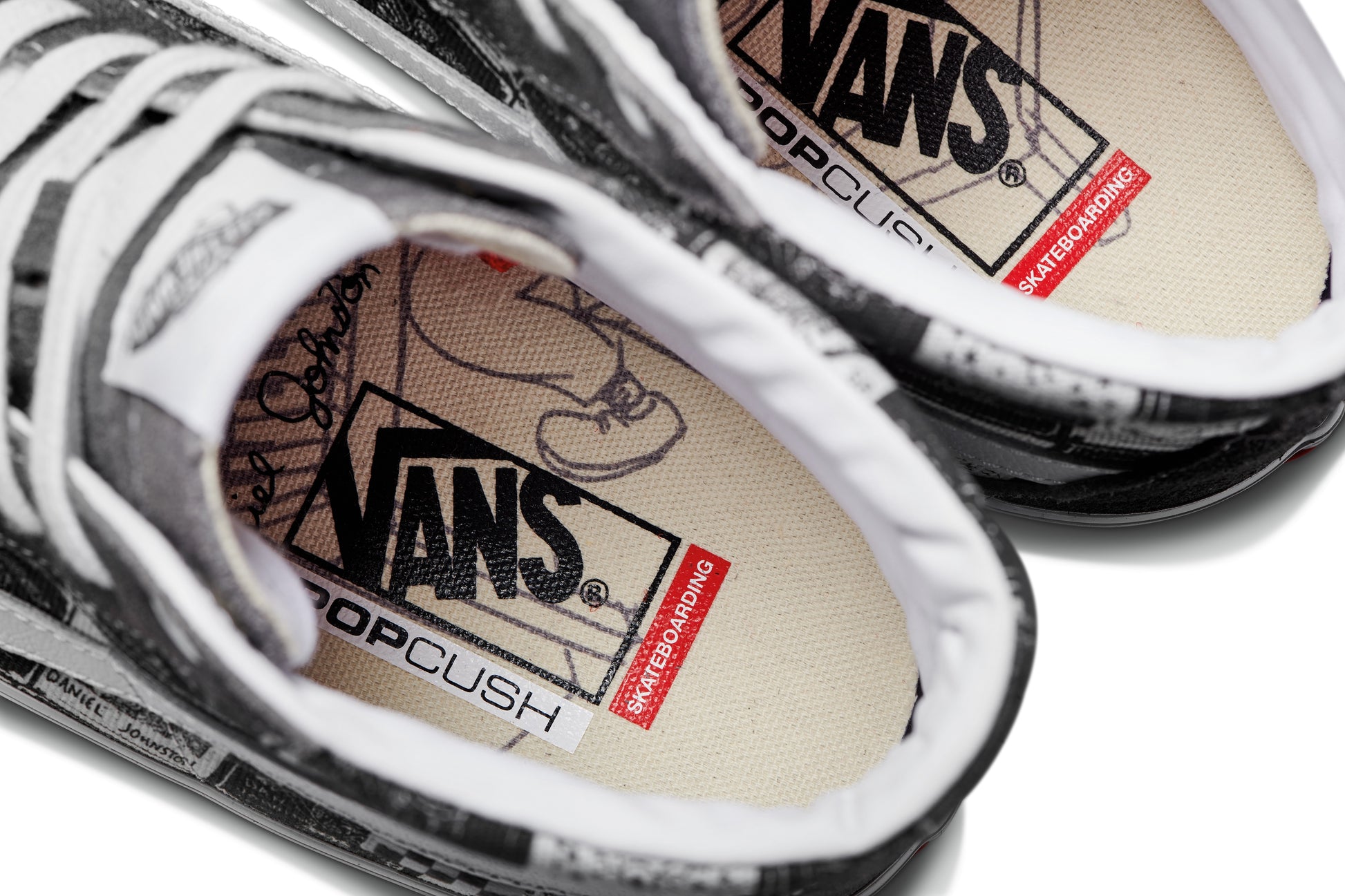 This season we have teamed up with Daniel Johnston’s friends, family, and the “Hi, How Are You Project” to inspire new conversations around mental health issues by funding and creating thoughtful media content, projects, and events. We stand in support of their mission to remove the stigma and shame around mental health, so people will feel open to communicate, one conversation at a time. To raise awareness, we are proud to deliver the Vans x Daniel Johnston Skate Sk8-Hi, featuring Daniel’s iconic cassette tape artwork on elevated suede and 10 oz canvas uppers. In his early songwriting years, Daniel would hand-draw on individual cassettes and give them to friends and strangers. The artwork on this shoe features a checkerboard created from these cassettes, as well as the same lo-fi, gritty execution from Johnston’s unique art. Standout skate features include the repositioned DURACAP™ reinforced underlays and fully redesigned uppers, combined with a new two-part foxing tape that features a deeper knurl pattern on the toe, to make the Skate Sk8-Hi durable enough to withstand daily skateboarding abuse. For more board control, the new molded heel counter and internal tongue straps lock in your feet. Even the gum rubber sole that made Vans famous has been elevated with the SICKSTICK™ rubber compound to deliver more grip and boardfeel. Plus, POPCUSH™ energy return sockliners provide superior cushioning and impact protection while helping to lessen leg fatigue for longer skate sessions. Internal heel stiffeners have also been added to provide more support and stability. We believe in the power of skateboarding as a form of creative expression, and that it can have a profound impact on mental well-being. Because sometimes skateboarding is about more than just the tricks. •VANS SKATEBOARDING X DANIEL JOHNSTON COLLECTION: Custom artwork in this collection was inspired by Daniel’s iconic homemade cassette tapes and lo-fi art. •INCREASED DURABILITY - DURACAP™ reinforced materials, deeper knurl texture on the toe bumpers, and higher sidewall heights provide a more heritage look with increased durability and protection. •FULLY REDESIGNED UPPERS - Reconstructed with a molded heel counter and internal tongue straps for a locked-in fit and more board control. •LEGENDARY GRIP - Our new, proprietary SickStickTM gum rubber compound is our stickiest rubber yet. •POPCUSH CUSHIONING - Our best cushioning and impact protection. POPCUSH™ energy return footbeds protect your feet while helping to lessen leg fatigue for longer skate sessions.